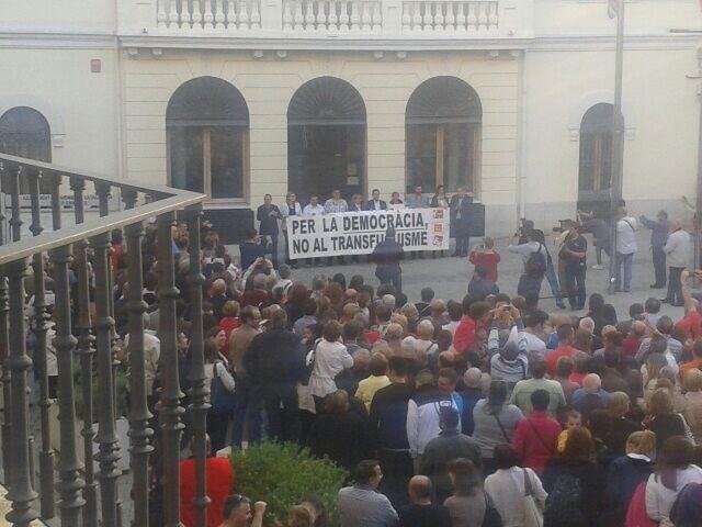 La vergonya d'ahir fou un acte encobert de campanya. He de rectificar. D'encobert res de res. A pél. Acusacions populistes com la que lluien a la pancarta els representants del govern en funcions : "Per la Democràcia, No al Transfuguisme" i que passejaven al voltant de la plaça amb cert regust de "paseíllo torero". Ahir si que fou necessària la xaranga per amenitzar musicalment un nou ridicul históric ( dos en una setmana ) per a la història de Tavernes de la Valldigna.
